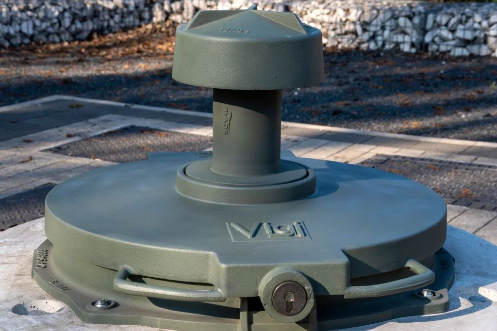 To achieve this, we cast the entire VIGI (frame, cover, chimney) in a special cast iron treatment, making it ultra-resistant and puncture-proof. We equip it with a stainless steel drip tray, an anti-intrusion sensor, and a safety lock that meets the highest security access standards (European barrel, Deny lock).